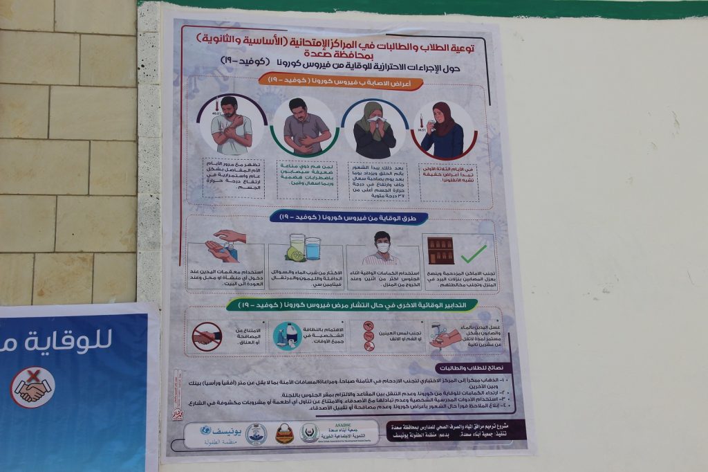 مع بداية انطلاق اختبارات شهادتي الثانوية العامة والأساسية، نفذت الجمعية بالتعاون مع مكتب التربية والتعليم بصعدة حملة توعية بطرق الوقاية من فيروس كورونا المستجد إستهدفت المراكز الاختبارية في 10 مديريات بمحافظة صعدة (سحار ، صعدة ، الصفراء ، مجز ، منبه ، ساقين ، حيدان ، غمر ، قطابر، رازح ) نفذها (96) متطوع ومتطوعة ، من العاملين في الحقل التربوي في بصعدة.. وتستمر حملة التوعية حتى إنتهاء الإختبارات .